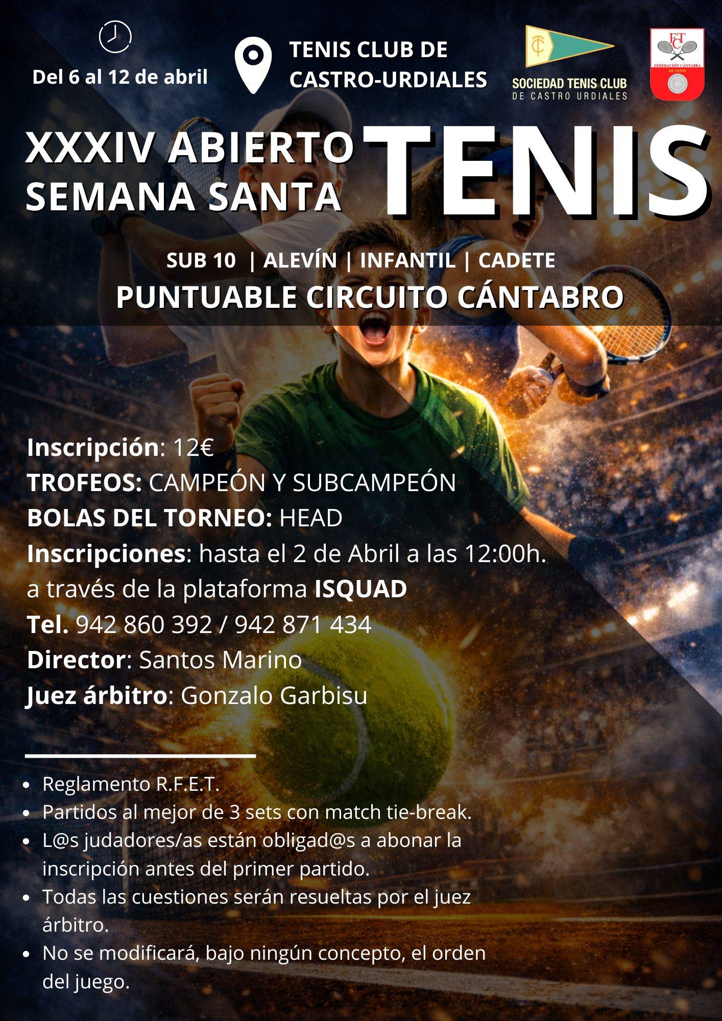 Presentamos el XXXIV Abierto de Tenis Semana Santa 2026, una cita imprescindible para los jóvenes talentos del tenis cántabro.