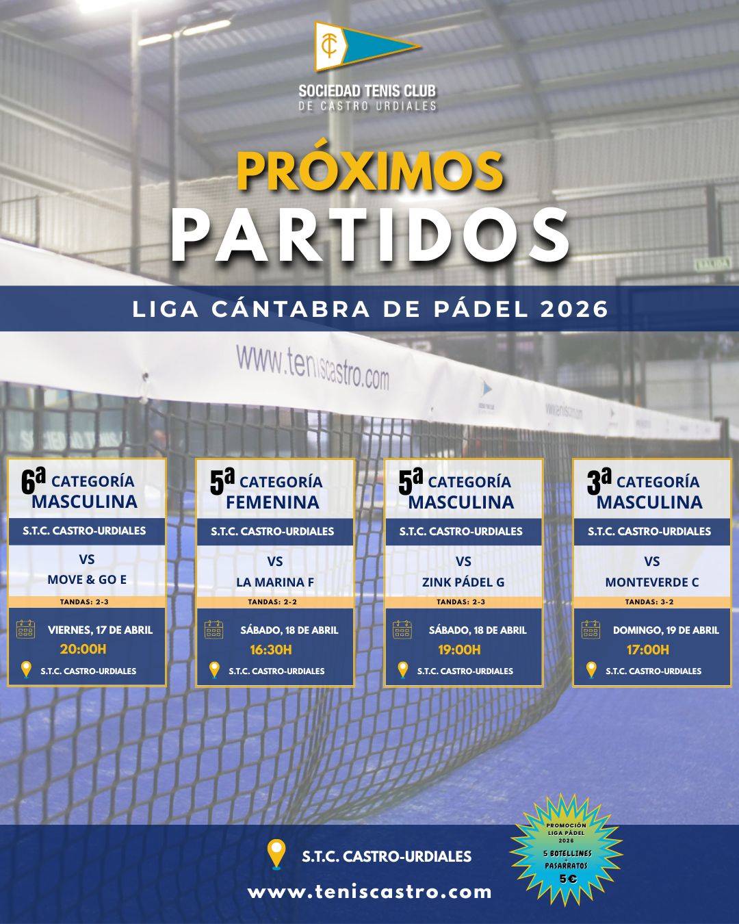 Del 6 al 12 de abril, nuestras pistas volverán a vibrar con la ilusión, la competición y el mejor ambiente deportivo en un torneo puntuable para el Circuito Cántabro.